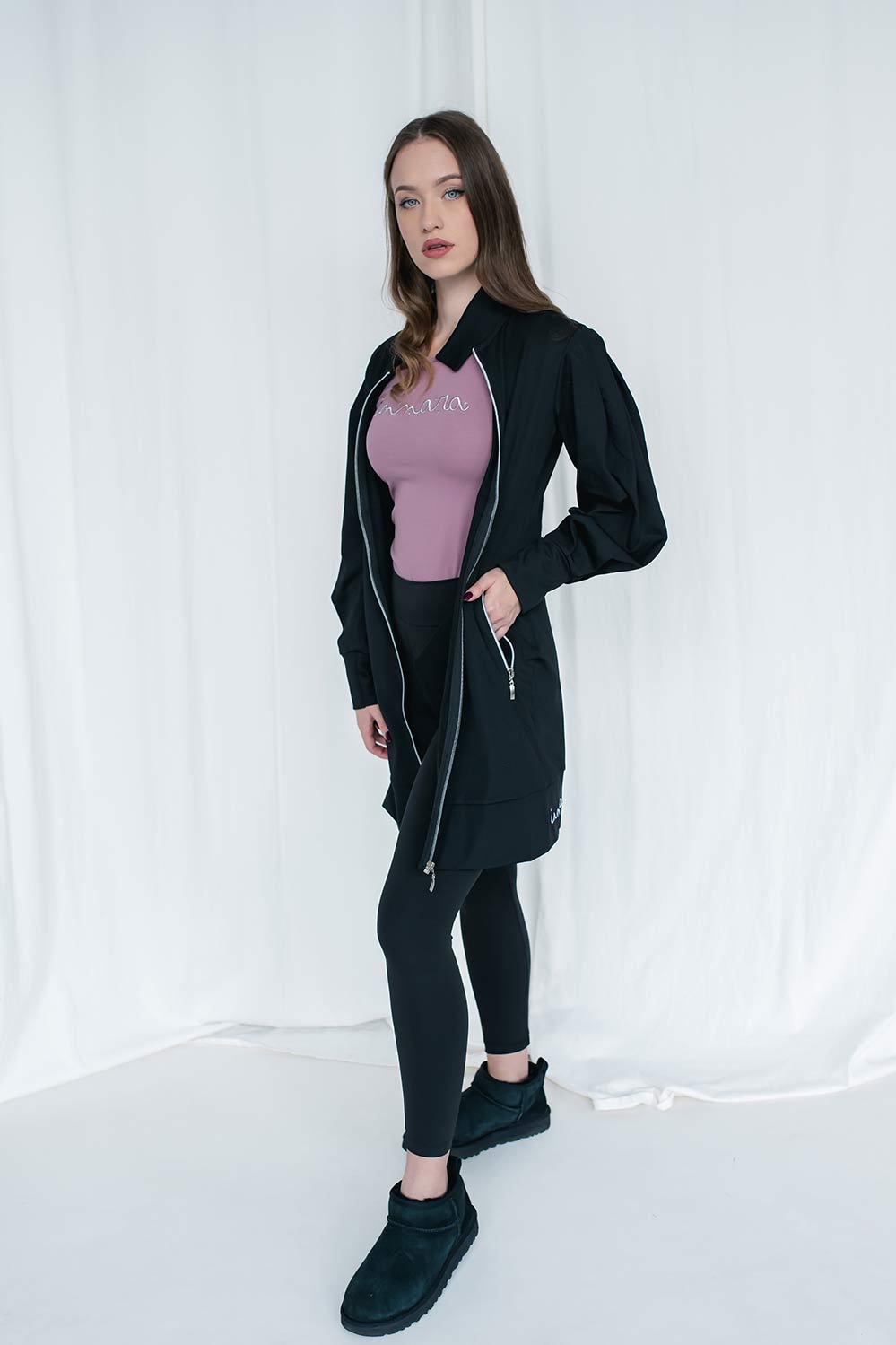 Tunika Esenja je izdelana iz prijetne tkanine, ki nudi udobje in eleganco. Ima čudovito vezenje in je primerna za vsakodnevno nošenje. Kombinirate jo lahko z Legicami Blaženost ali jo nosite samostojno kot obleko.